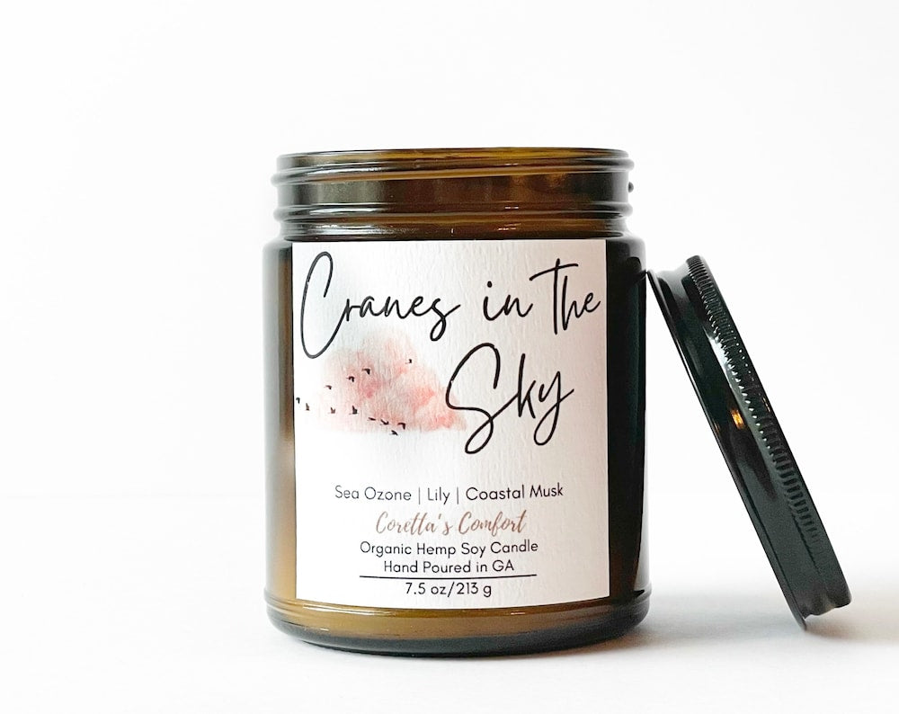 A soft escape in a jar. Cranes in the Sky evokes the feeling of standing at the edge of the ocean, eyes closed, letting the breeze carry your worries away. Clean sea air, delicate lily, and a whisper of coastal musk come together in a scent that’s serene, nostalgic, and effortlessly beautiful—just like the song that inspired it.