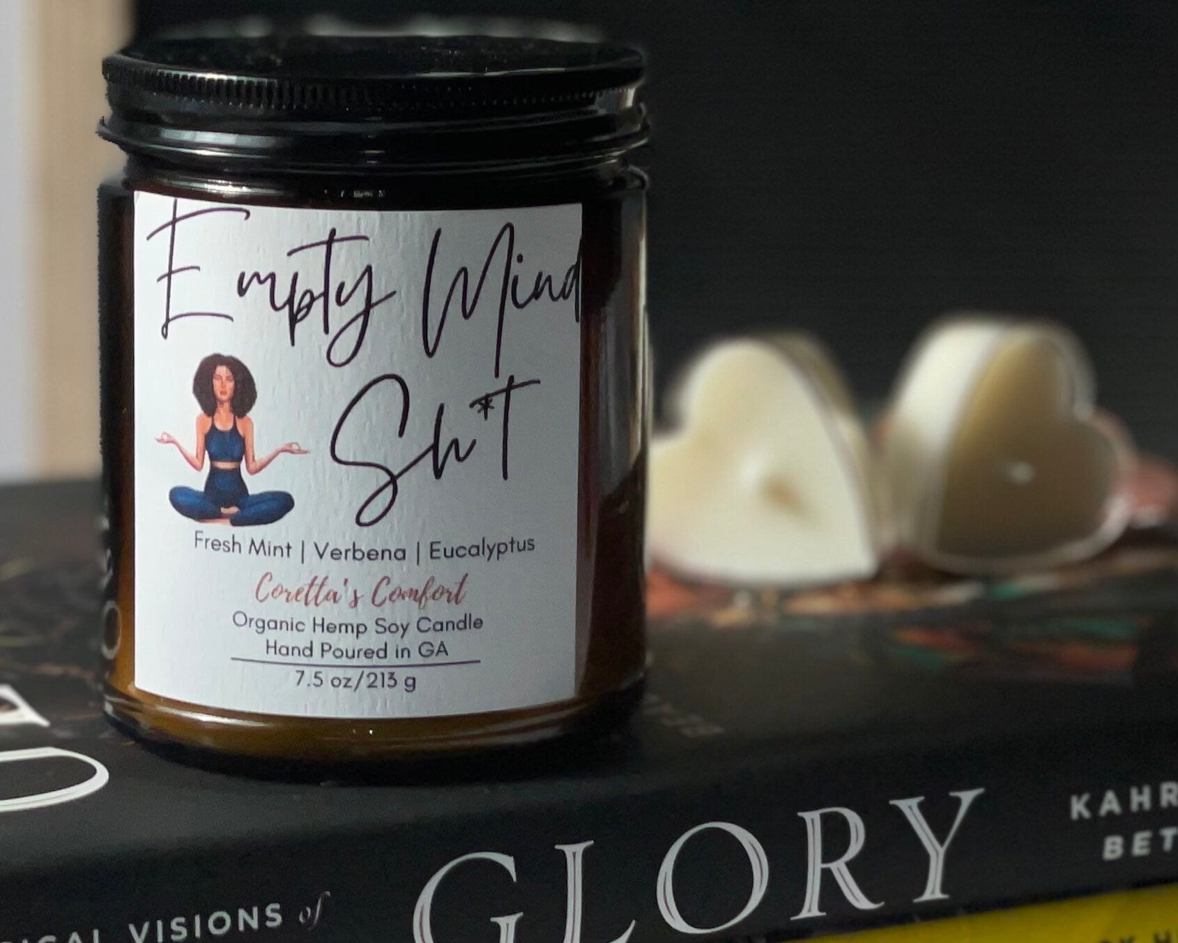 This scent is like taking a deep breath and finally letting go. Empty Mind Sht* is clean, crisp, and soul-soothing — mint, lemon verbena, and eucalyptus come together in a bright, herbal blend that feels like clarity in candle form.