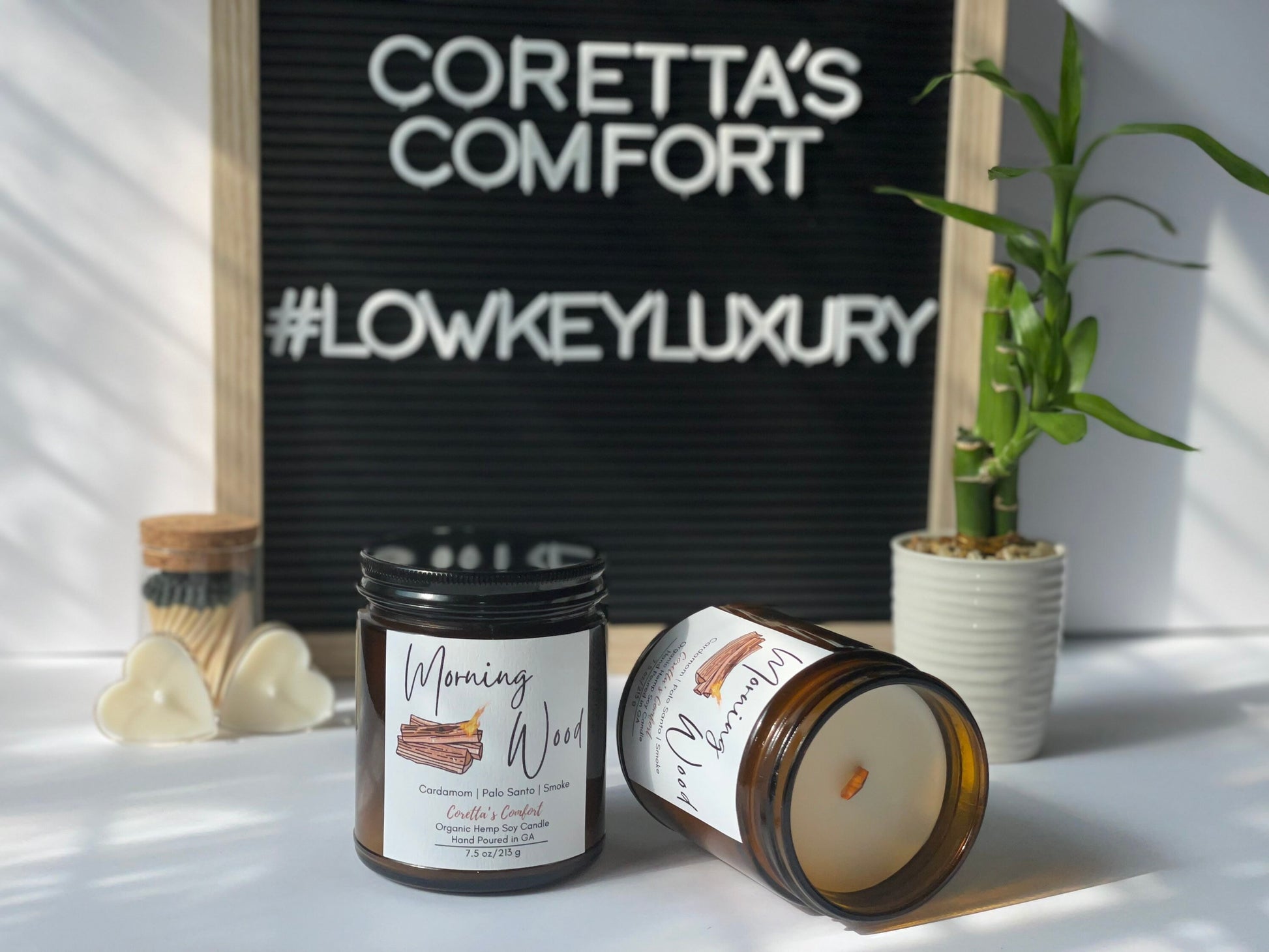 Grounding with a hint of mischief, Morning Wood is palo santo-forward and ready to set the tone. Earthy smoke, warm cardamom, and resinous woods blend into a scent that feels like freshly burned palo santo sticks and a fresh start. It’s made for your morning rituals — whether that’s meditation, manifestation, or just setting the mood.